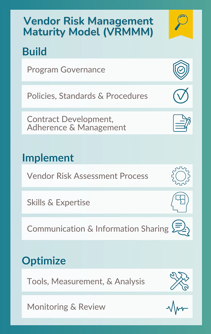 The VRMMM breaks third-party risk down into eight categories and explores more than 250 program elements that should form the basis of a well-run third-party risk management program.